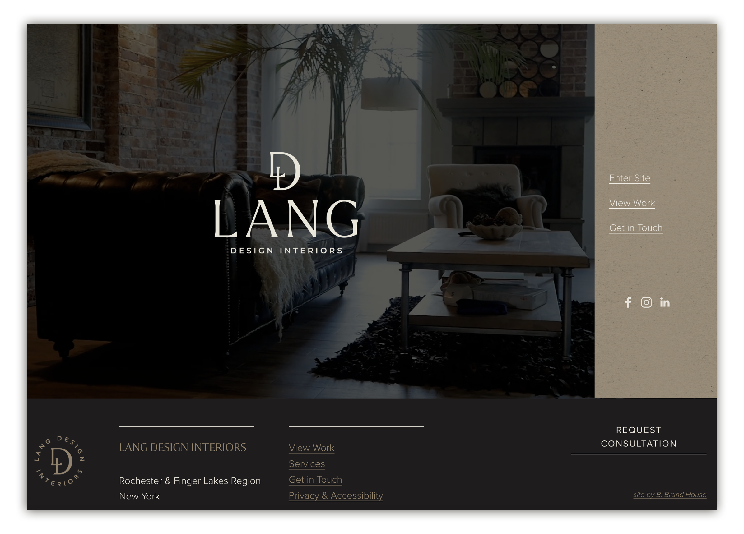 Full website build puts this new brand proudly on display. Photo and video were at the forefront of this web design––a crucial component for the interior design industry. The site’s user flow prioritizes Lang’s client portfolio and how to work with the studio, making both actions easy to take.