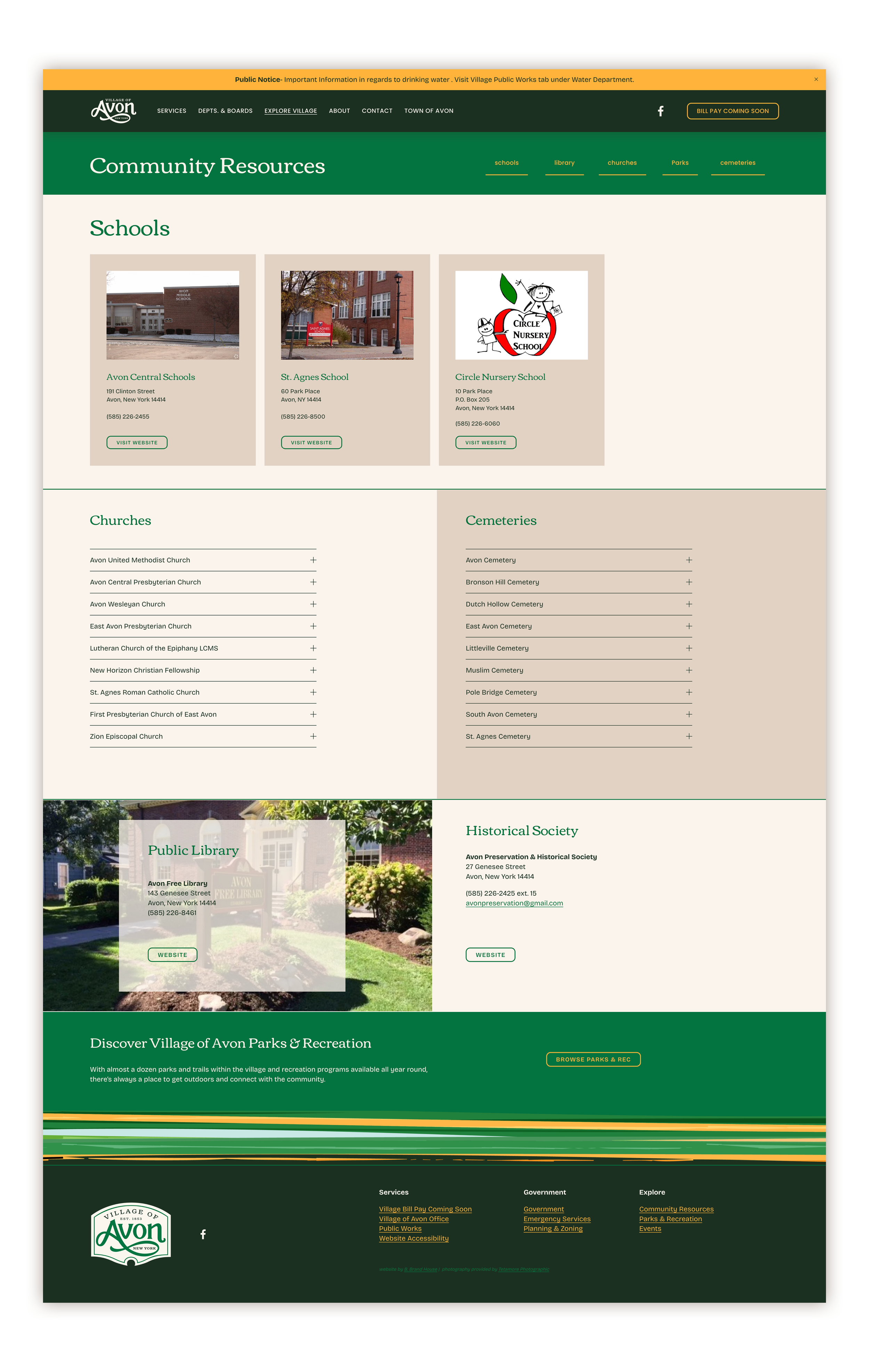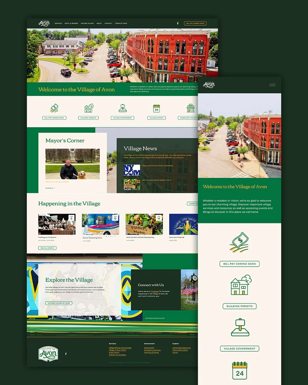 With a website that had been created over 15 years ago, Village of Avon came to us in need of a full rebuild. Throughout the process, one theme remained clear: municipal websites can be fun. The Village of Avon’s website serves two distinct audiences: residents in need of important information and functionality, and tourists looking for fun, interesting reasons to visit the town.
